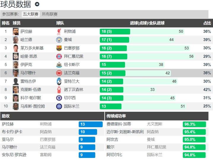 马尔穆什为什么会吸引瓜迪奥拉?因为这是一位全能高效前锋。现年25岁的马尔穆什,当打之年,身高1.83米,右脚球员,能踢锋线多个位置,可边可中,德转身价6000万欧元。马尔穆什本赛季至今各项赛事共为法兰克福出场26次,打入了惊人的20个进球,还有13次助攻。
